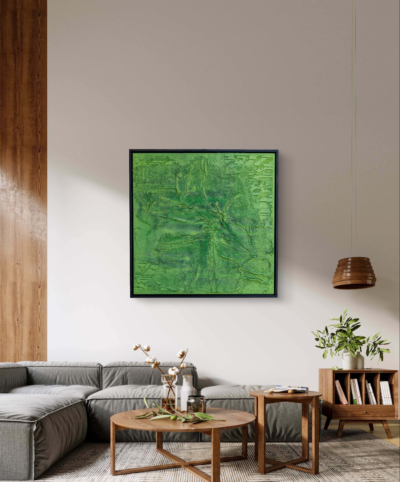 Hands planting a young green seedling in soil, framed artwork by Sasa Delic